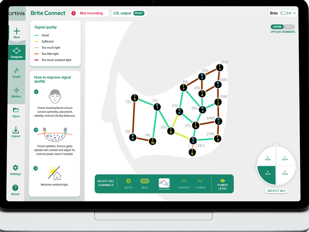 多功率增益控制允许自动或手动为每个大脑区域和参与者选择最佳光学设置。